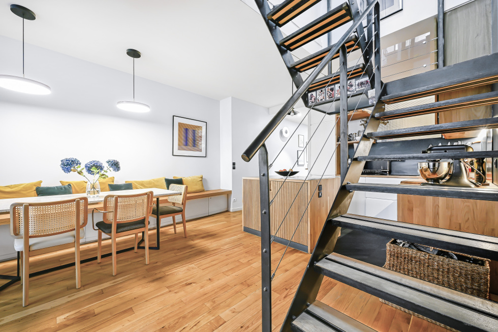 Dans un immeuble d'ateliers, anciennement une imprimerie, au centre de Paris, à proximlité de l'hôpital Saint Louis, venez découvrir ce très bel appartement de 81,67m2. Situé au 2ème étage l'appartement offre le charme de ces ateliers d'époque profitant d'une très grande verrière et de plus de 4m de hauteur sous plafond dans le séjour. L'appartement a été refait en 2019. La salle d'eau ainsi que la cuisine ont été refaites, des rangements sur mesure ont été créés; le plan a été optimisé pour profiter de chaque partie de l'atelier. Une cheminée apporte cette chaleur supplémentaire à ce lieu de charme. Deux chambres en mezzanine. Une grande cave de 10m2 en sous-sol de l'immeuble.
